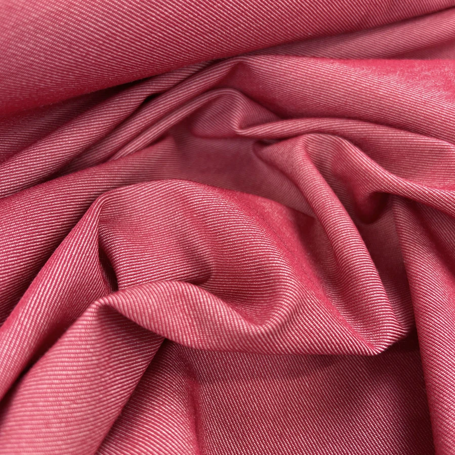 The woven red and white yarns give this cloth a unique shimmer effect. Superb for jackets, jeans, skirts and dresses.