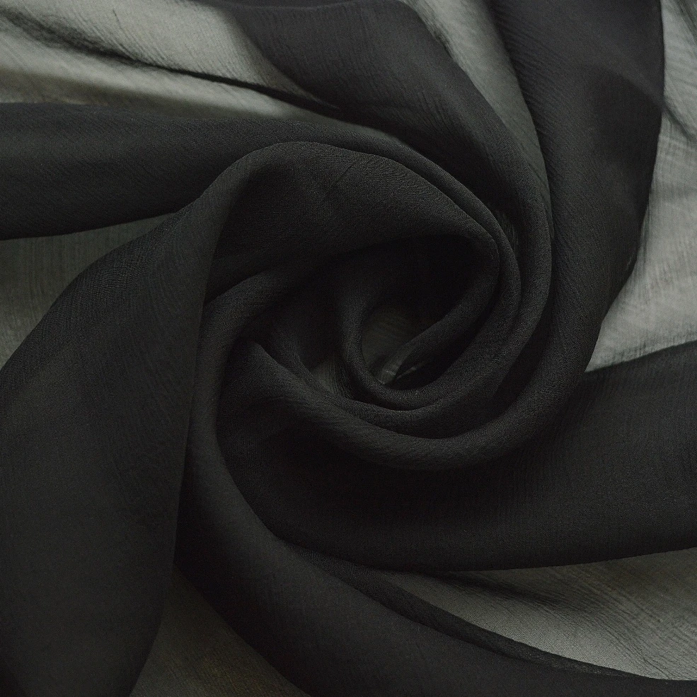 Not just a fabric, but a statement of luxury and sophistication—this black silk chiffon with its gentle crinkle is your go-to for creating exquisite fashion pieces that are as versatile as they are striking.