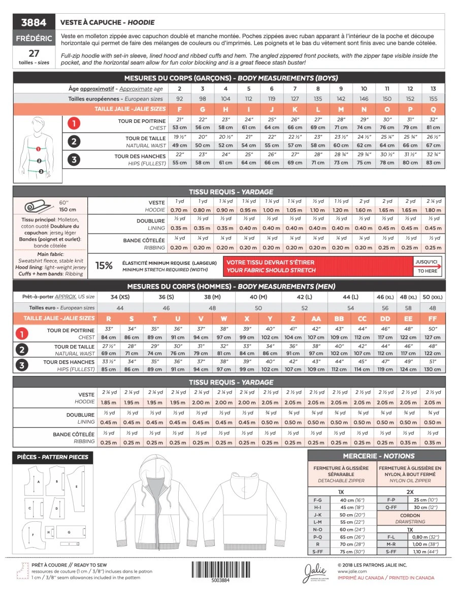 Introducing the Frederic Hoodie sewing pattern by Jalie! This pattern offers a stylish and versatile full-zip hoodie design, perfect for creating your own unique and cosy wardrobe staple.