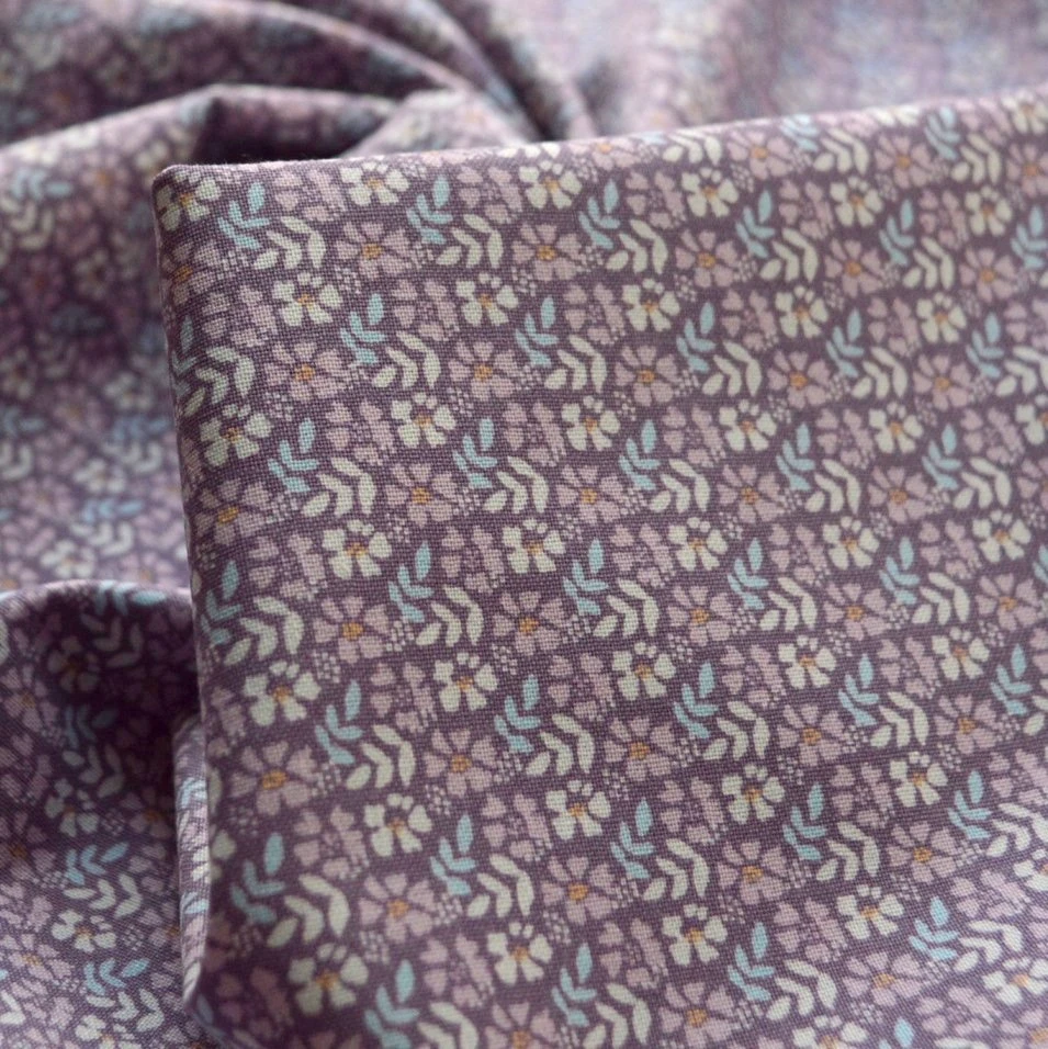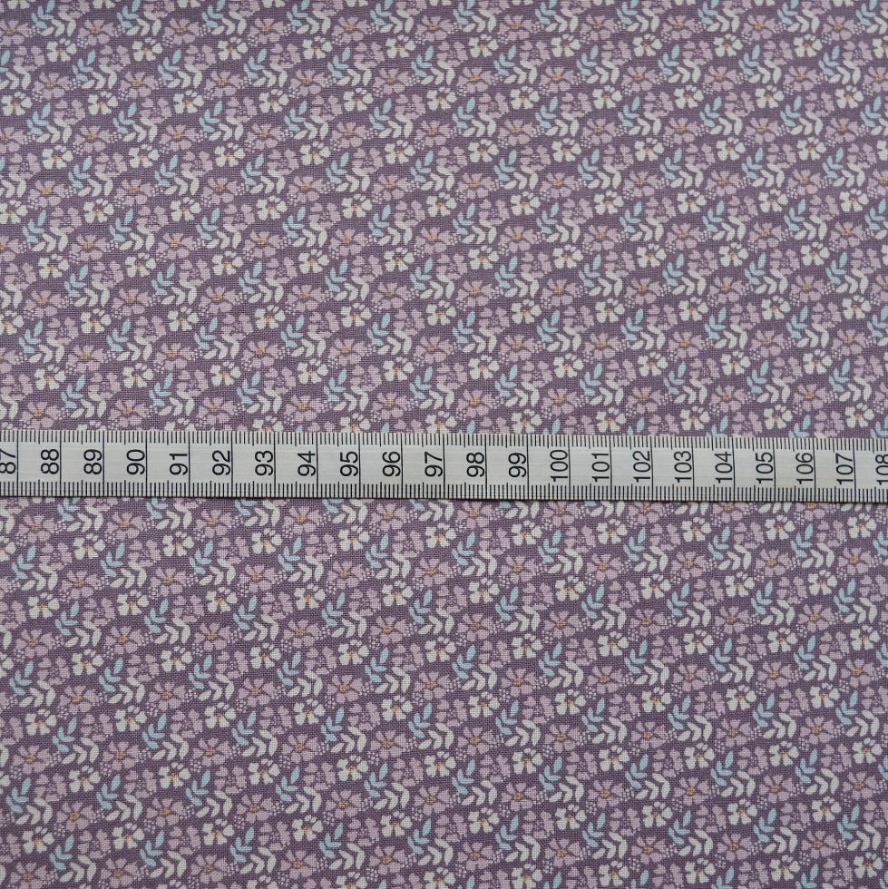 | 112cm wide superb quality solid craft/quilt cotton fabric with all over tiny flowers in pale lilac and white on a lavender ground. | |