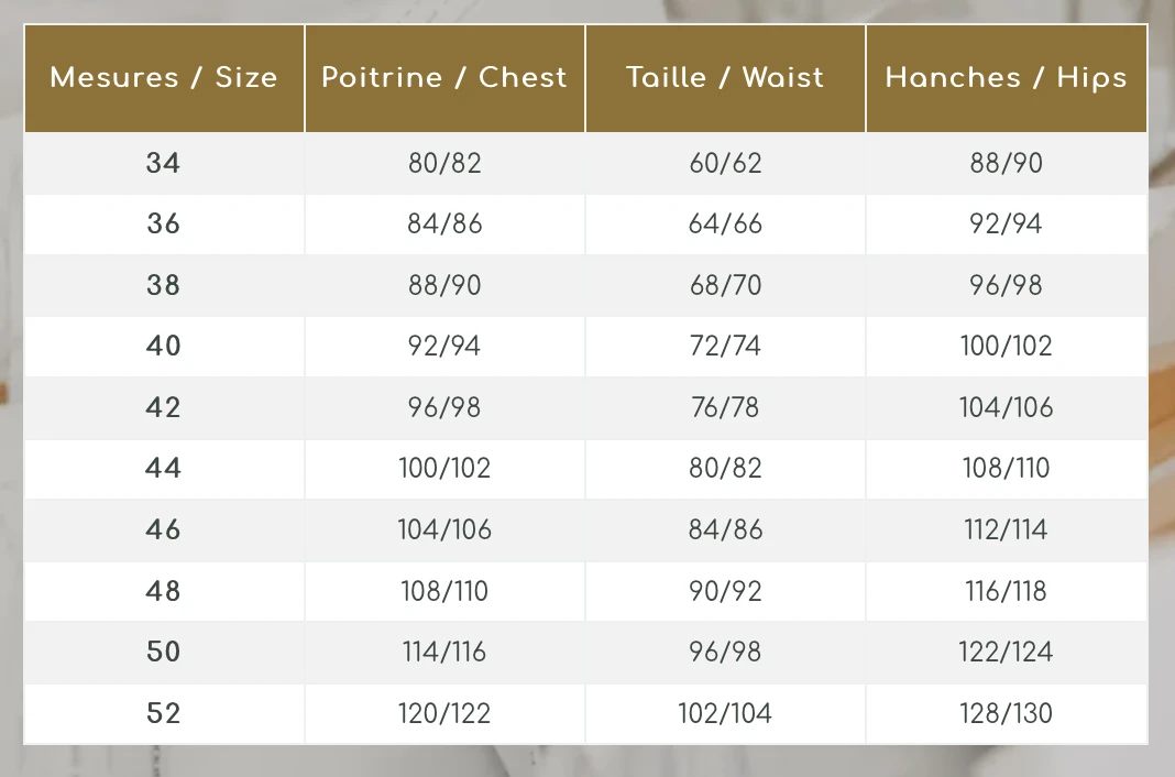 Sizes: EU 34-52 (approximately UK 6-22 based on our size chart)