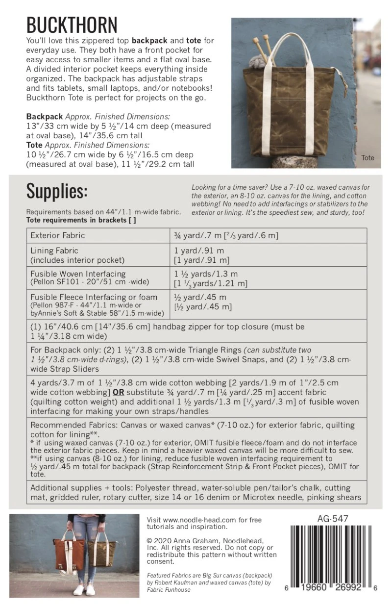 if you are using canvas (8-10 oz.) for the lining, reduce fusible woven interfacing requirement to ยฝ yard/.45 m total for backpack (Strap Reinforcement Strip & Front Pocket pieces), OMIT for tote.