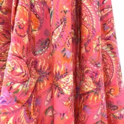 | This magnificent pink fabric is 148cm wide with an all over paisley print in plenty of other magnificent colours. A little info on our Pima Cotton Lawns. They are basically superior quality to normal lawn, the yarn is made from extra-long staple cotton and is combed and extra fine, the combination of all of this, and a dense yarn count gives you beautifully fine (not thin) silk-like cotton. Softer than a poplin because the yarn is much finer. This allows for (in our opinion) a better drape, but this can be a personal choice. A great summer dress fabric! | |